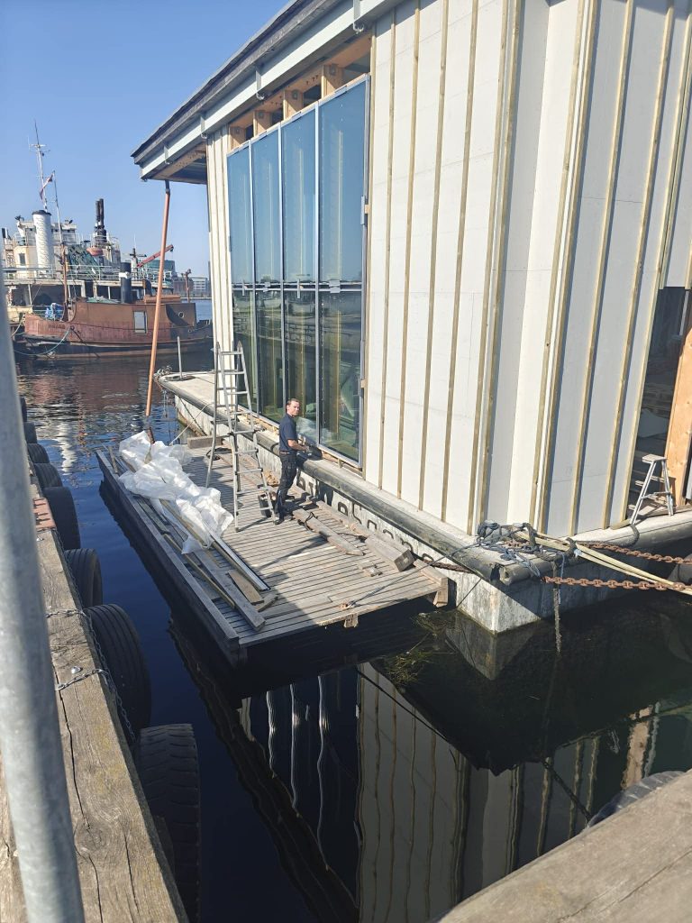 Vi har udført professionel montering af specialtilpassede glasfacader på en pram ved Refshaleøen.